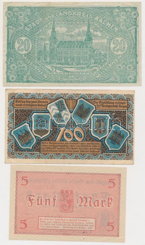 Németország / Weimari Köztársaság / Ahlen 1918. 5M + Torgau 1922. 100M + Aachen 1923. 100.000M + 20.000.000M + 5.000.000.000M T:I-,III,III-