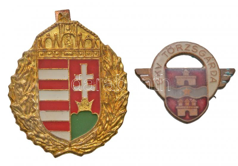 2db-os jelvény tétel: DN "Címer" aranyozott, zománcozott jelvény (33x27,5mm) + "BKV törzsgárda" zománcozott fém jelvény (19,5x22,5mm) T:2