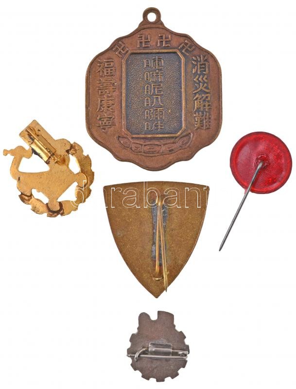 5db vegyes magyar és külföldi jelvény, medál, közte ~1970-1980. "Móricz Zsigmond Általános Gimnázium" zománcozott Br jelvény (30x27mm) T:2,2-