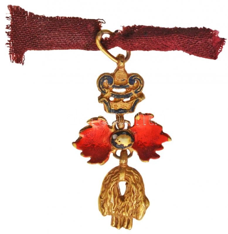 ~1900. "Aranygyapjas Rend" jelzetlen aranyozott Ag minatűr jelvénye sz... https://www.darabanth.com/en/257-Online-auction/257.0/Numismatics/Faleristics-medals-orders-badges~200016/7E1900-Aranygyapjas-Rend-jelzetlen-aranyozott-Ag-minatur-jelvenye-szalagon-T2---Austro-Hungaria~II1260224