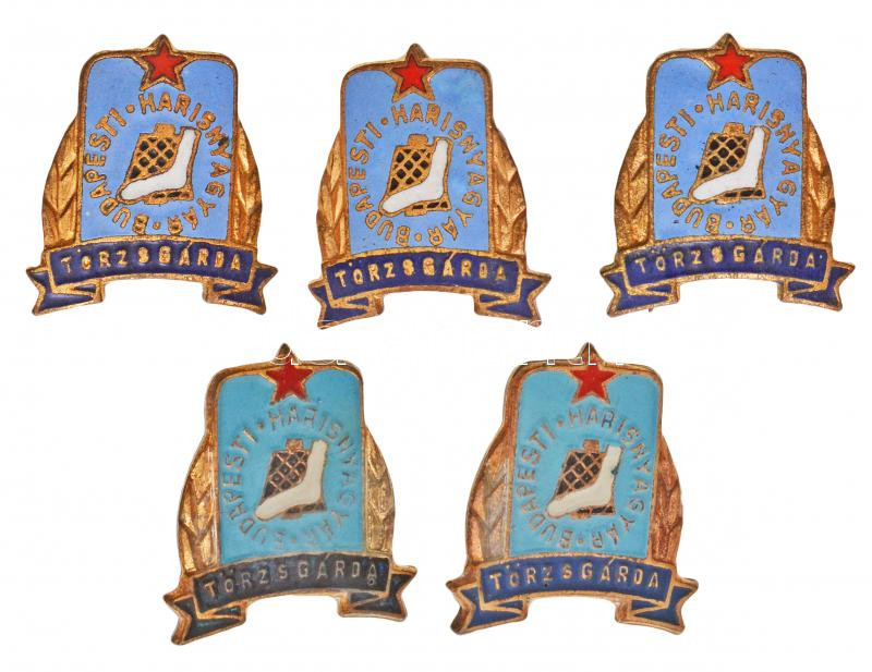 ~1970. "Budapesti Harisnyagyár Törzsgárda" 5db zománcozott fém jelvény T:2