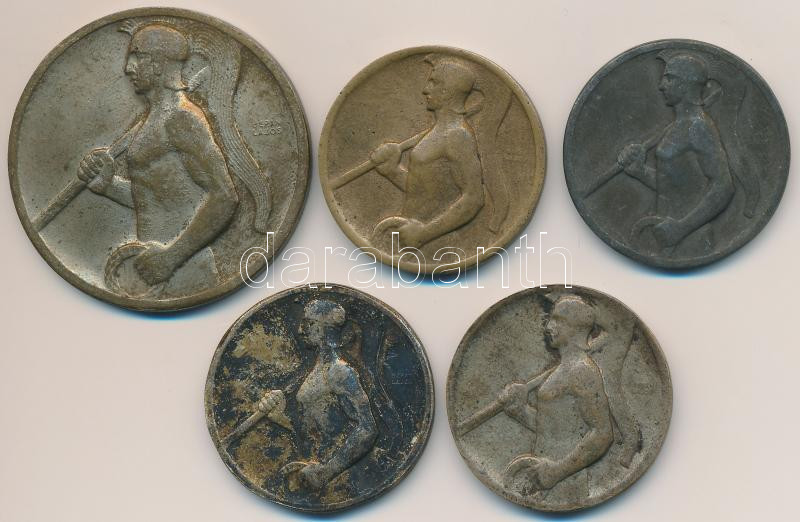 Berán Lajos (1882-1943) ~1930. "Ferencz Városi Torna Club" 5db klf méretű díjérem (40mm) T:2-,3