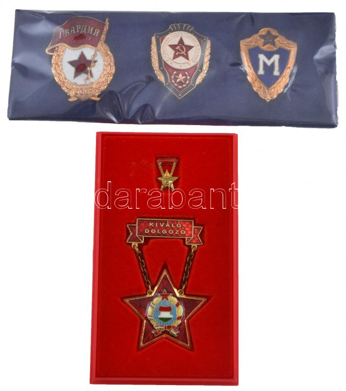 Vegyes: ~1960-1970. "Kiváló Dolgozó" zománcozott fém kitüntetés, miniatűrrel eredeti tokban + Szovjetunió 3db klf zománcozott jelvény becsomagolva T:1,1-