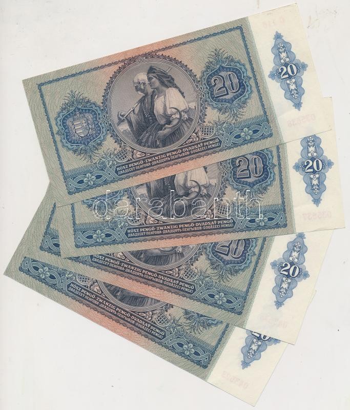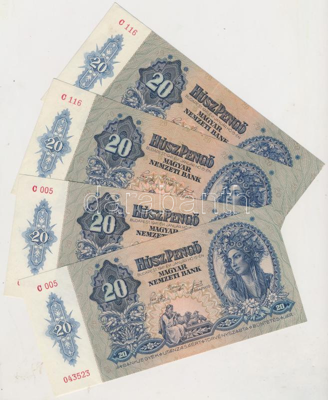 https://www.darabanth.com/en/257-Online-auction/257.0/Numismatics/Hungarian-Banknotes~200007/1941-20P-4x-parban-sorszamkovetok-TI-II~II1259016