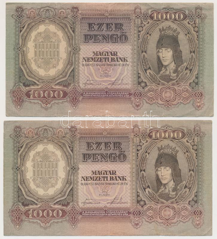 https://www.darabanth.com/en/257-Online-auction/257.0/Numismatics/Hungarian-Banknotes~200007/1943-1000P-2x-TIII~II1261145