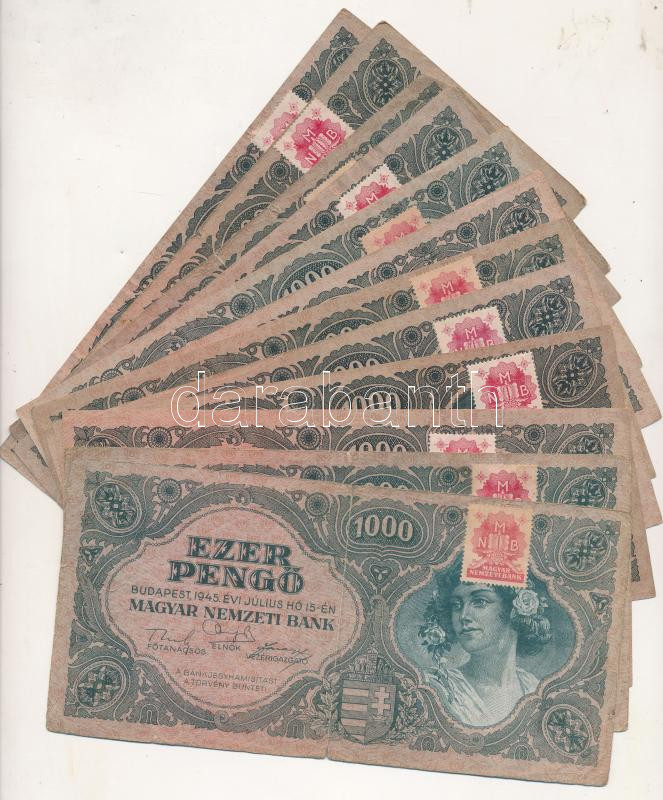 1945. 1000P (30x) mind piros "MNB" bélyeggel T:vegyes