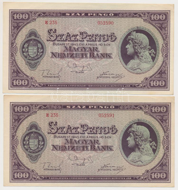 https://www.darabanth.com/en/257-Online-auction/257.0/Numismatics/Hungarian-Banknotes~200007/1945-100P-4x-parban-sorszamkovetok-BUNTETES-szoban-N-felett-lemezhiba-TI-II-III~II1261220