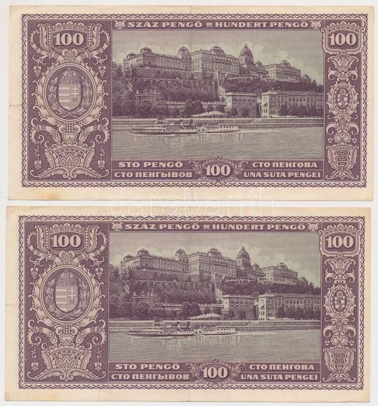 1945. 100P (4x) párban sorszámkövetők, "BÜNTETÉS" szóban "N" felett lemezhiba T:I-,II,III