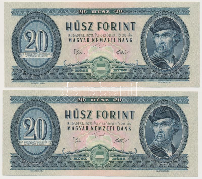 1975. 20Ft (2x) sorszámkövetők T:II szép papír