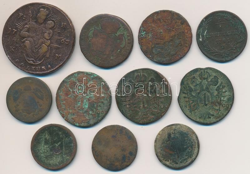 https://www.darabanth.com/en/257-Online-auction/257.0/Numismatics/Hungarian-coins-and-coins-with-Hungarian-mint-marks~200008/11db-os-vegyes-magyar-rezpenz-tetel-kozte-foleg-magyar-verdejelu-krajcarok-tobb-serult-T~II1249933