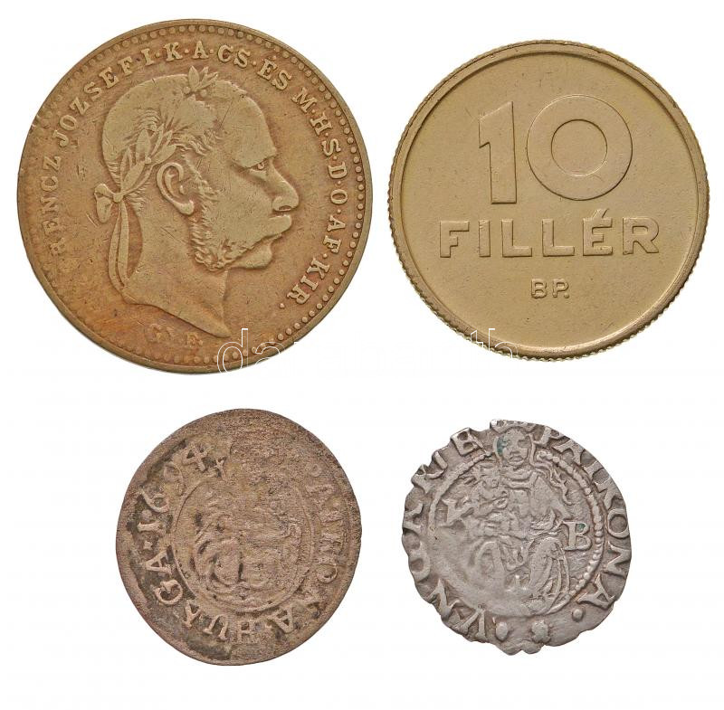 1553K-B Denár Ag "I. Ferdinánd" (0,32g) + 1694. Denár Ag "I. Lipót" (0.37g) + 1870GYF 20kr Ag "Váltó Pénz" + 1964. 10f Al aranyozott T:2-,3,1-
