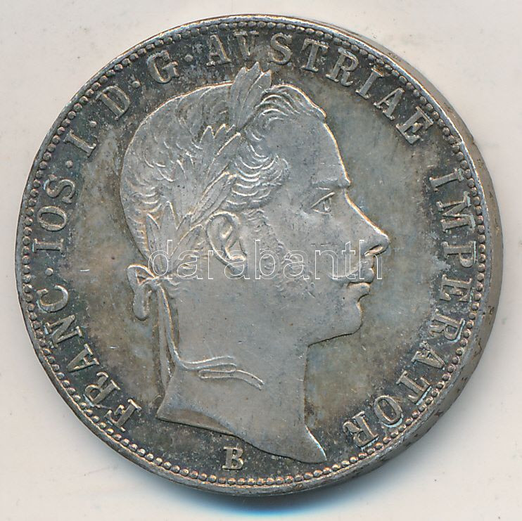 https://www.darabanth.com/en/257-Online-auction/257.0/Numismatics/Hungarian-coins-and-coins-with-Hungarian-mint-marks~200008/1858B-1Fl-Ag-Ferenc-Jozsef-T2-ph-patina~II1261822