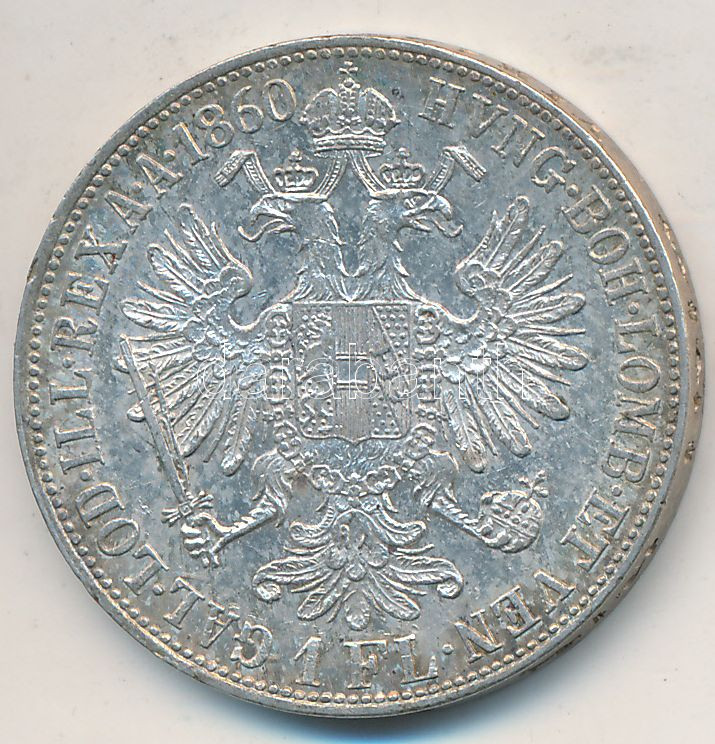 https://www.darabanth.com/en/257-Online-auction/257.0/Numismatics/Hungarian-coins-and-coins-with-Hungarian-mint-marks~200008/1860B-1Fl-Ag-Ferenc-Jozsef-T2-ph-patina~II1261830