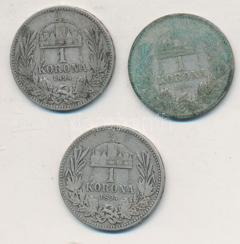 1894KB 1K Ag "Ferenc József" (3x) T:2-,3 patina