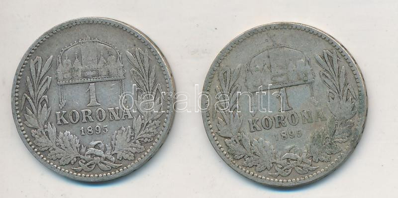 1895KB 1K Ag "Ferenc József" (2x) T:2-,3 patina