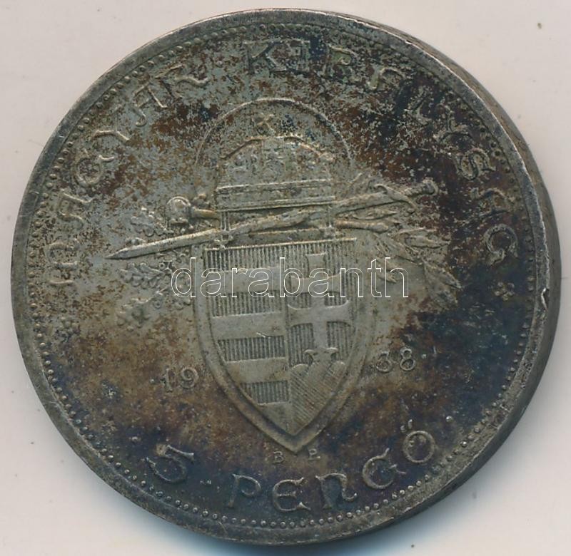 https://www.darabanth.com/en/257-Online-auction/257.0/Numismatics/Hungarian-coins-and-coins-with-Hungarian-mint-marks~200008/1938-5P-Ag-Szent-Istvan-T2-2-ph-eros-patina--Adamo-P81~II1248988