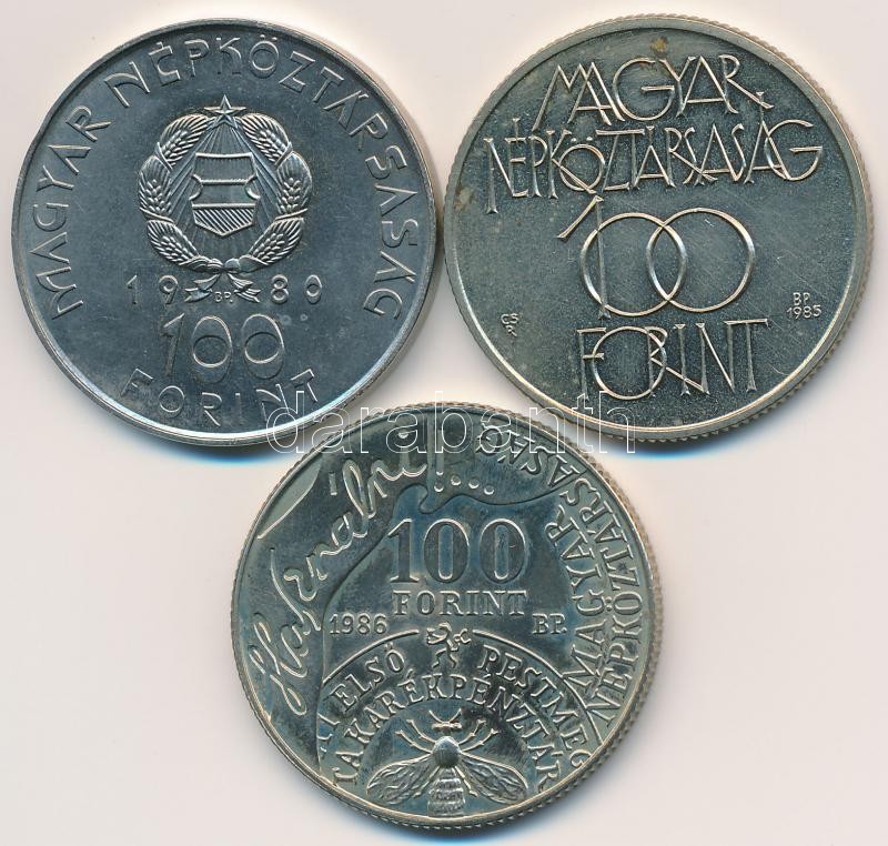 1980. 100Ft Ni "Szovjet-magyar közös űrrepülés" + 1985. 100Ft alpakka "Kulturális Fórum" + 1990. 100Ft alpakka "Fáy András" T:BU,2