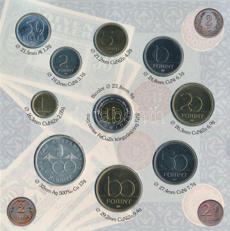 https://www.darabanth.com/en/257-Online-auction/257.0/Numismatics/Hungarian-coins-and-coins-with-Hungarian-mint-marks~200008/1997-50Ft-200Ft-10klf-db-benne-200Ft-Ag-Deak-szettben-TBU---Adamo-FO30~II1259569
