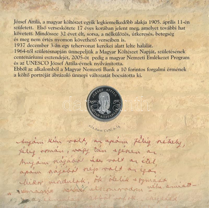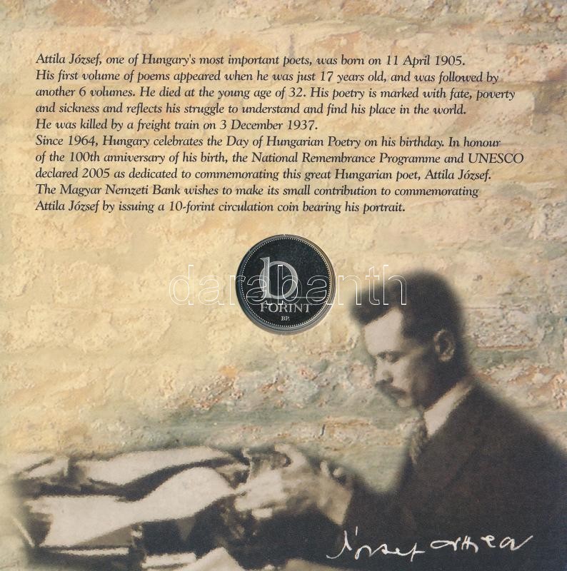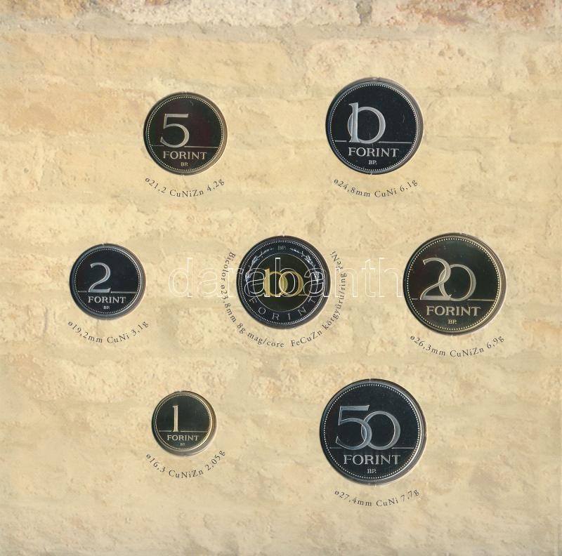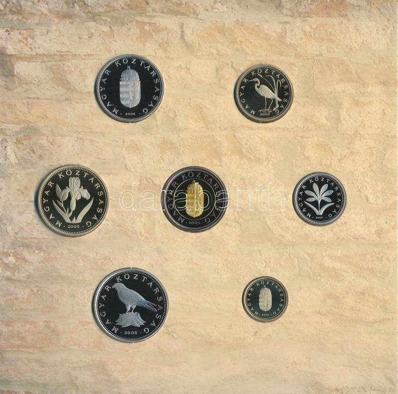 https://www.darabanth.com/en/257-Online-auction/257.0/Numismatics/Hungarian-coins-and-coins-with-Hungarian-mint-marks~200008/2005-1Ft-100Ft-7klf-db-os-forgalmi-sor-plus-10Ft-Jozsef-Attila-disztokos-szettben-TPP~II1259499