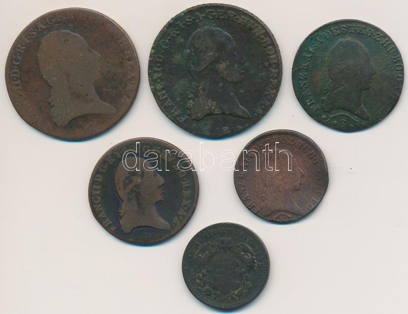 6db-os vegyes magyar rézpénz tétel, közte 1812S 1/2kr Cu, 1868KB 1kr Cu T:vegyes