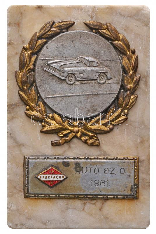 1961. "BP. Spartacus - Autó Sz. O. 1961" fém díjérem márványlapon (67x...