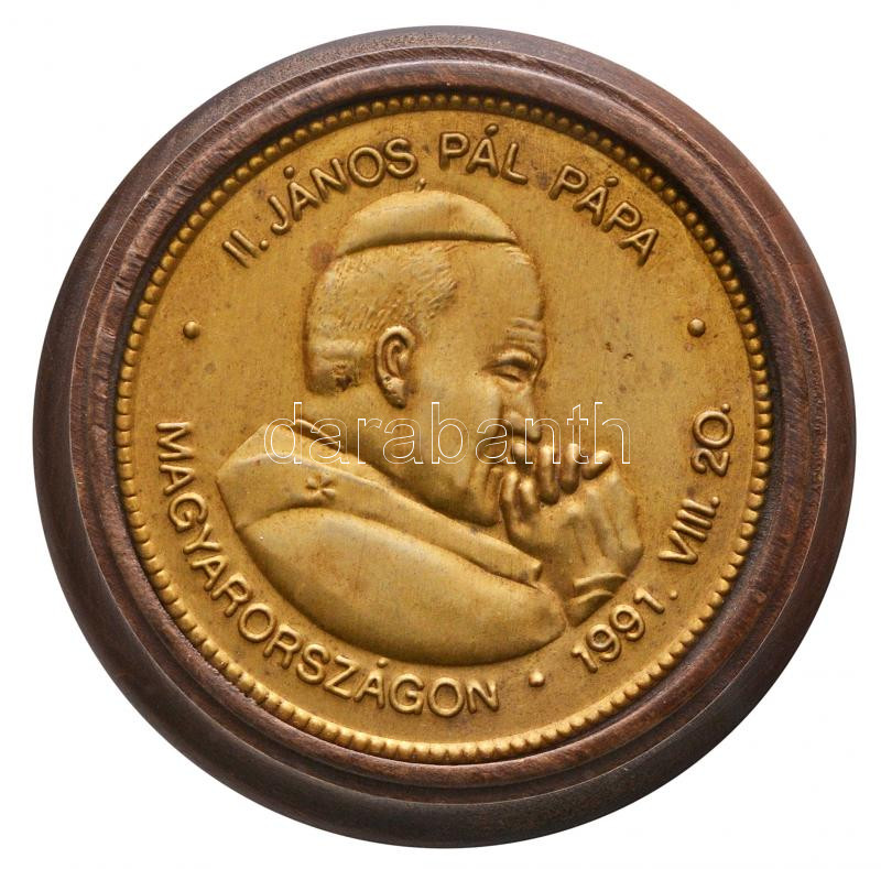 https://www.darabanth.com/en/257-Online-auction/257.0/Numismatics/Hungarian-commemorative-medals-and-plaques~200009/1991-II-Janos-Pal-papa-Magyarorszagon-1991VIII20-Cu-lemezerem-63mm-fatalpon-83mm-T2~II1259143