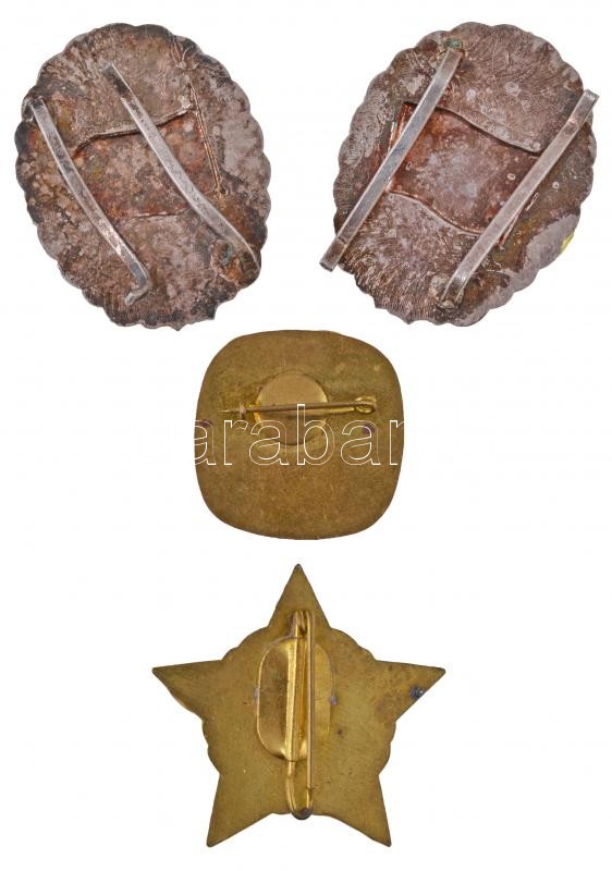 ~1970-1980. "Élenjáró Zászlóaljparancsnok" "Élenjáró Századparancsnok" + ~1960. "Munkásőr" szolgálati zománcozott jelvény 5 év szolgálat után (36mm) + "MN Nyugállományúak Klubja" zománcozott fém jelvény (26x26mm) T:2