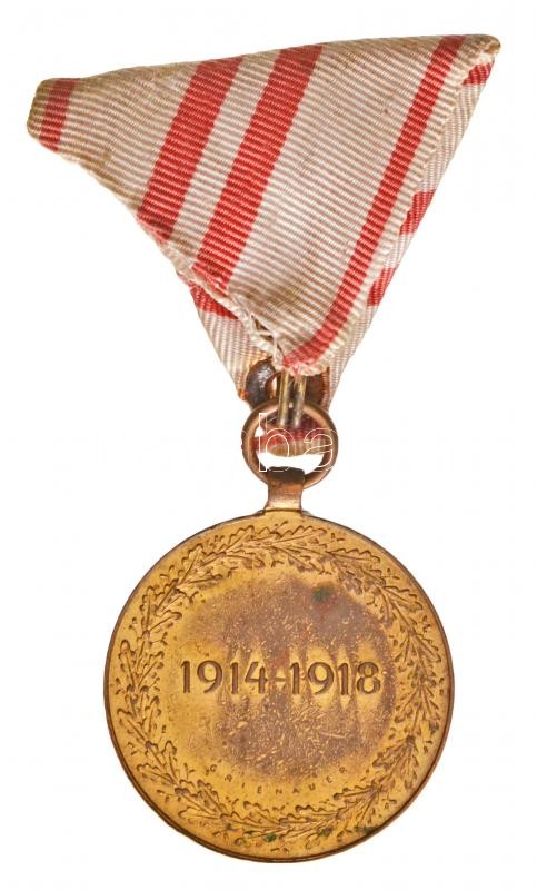 Description: Ausztria 1932. "Háborús Emlékérem 1914-1918" aranyozott Br kitüntetés mellszalagon T:2-