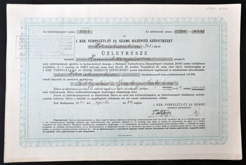https://www.darabanth.com/en/257-Online-auction/257.0/Numismatics/Shares-and-Tickets~200005/Budapest-1940-I-Kerulet-Verpeleti-ut-22-szamu-Hazepito-Szovetkezet-723db-uzletresze~II1260427