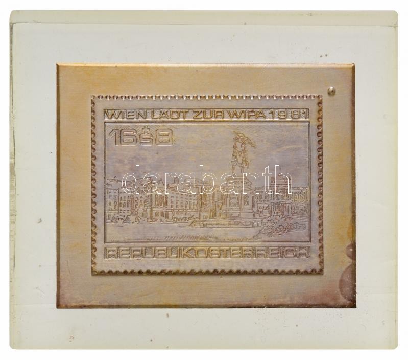 Description: Ausztria 1981. "WIPA (Bécsi Nemzetközi Bélyegkiállítás)" fém plakett műanyagba ágyazva (67x77mm) T:1