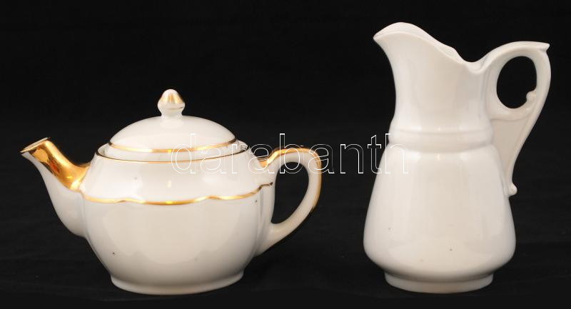 Kis kiöntők (2db), egyik jelzett (Zsolnay), kopott aranyozás, 10×14 cm, m:13 cm