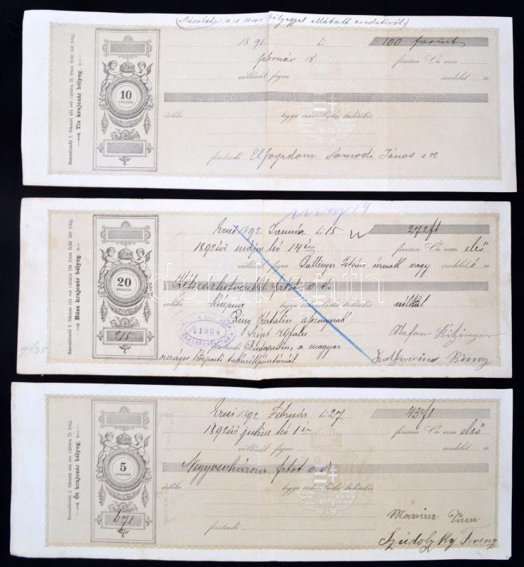 1892 3 váltó blanketta 5kr, 10kr, 20kr.
