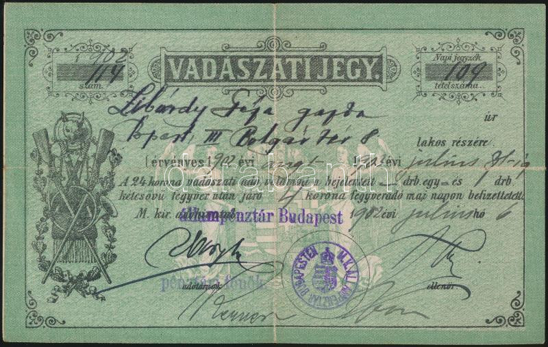 https://www.darabanth.com/en/257-Online-auction/257.0/Other-collectibles/Documents~16/1902-Obudai-lakos-vadaszjegye-Hunter-ID~II1263547