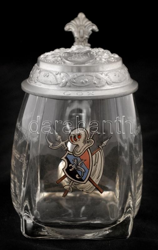 Emlék korsó ón fedővel, kézzel festett címerrel, m:14 cm