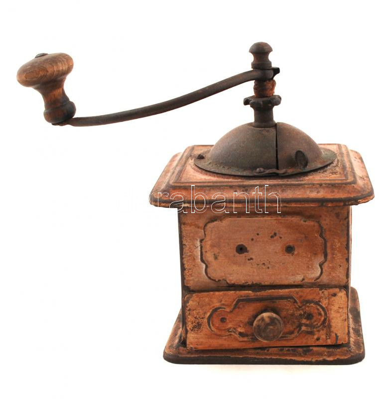 Régi rozsdás kávédaráló, m:17 cm, 12×12 cm