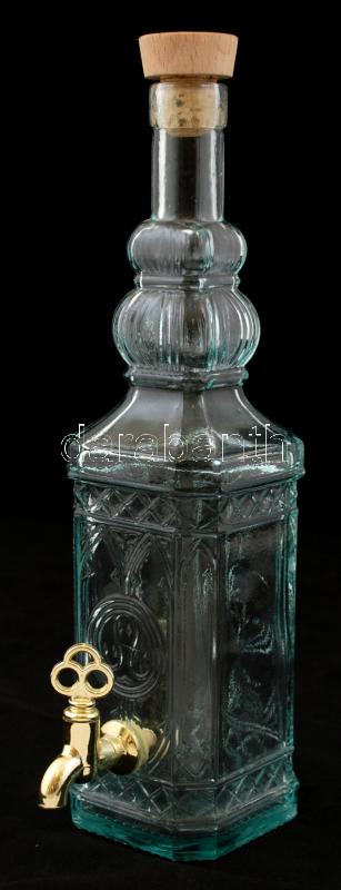 Dísz üveg palack alul csapolóval, hibátlan, m:31 cm