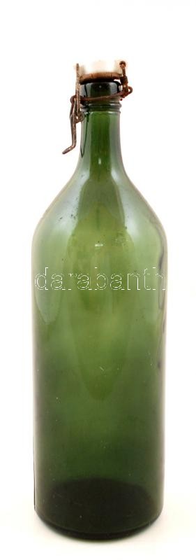 Régi dugós üvegpalack és kiöntő, hibátlanok, m:25 és 33 cm