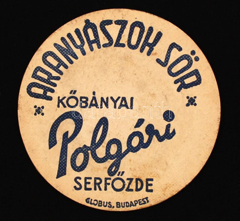 1943 Aranyászok sör, Polgári Serfőzde, alátét, felbélyegezve, postán e...