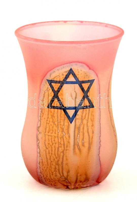 Üveg kiddus pohár Dávid csillaggal, anyagában színezett, hibátlan, 8x5...