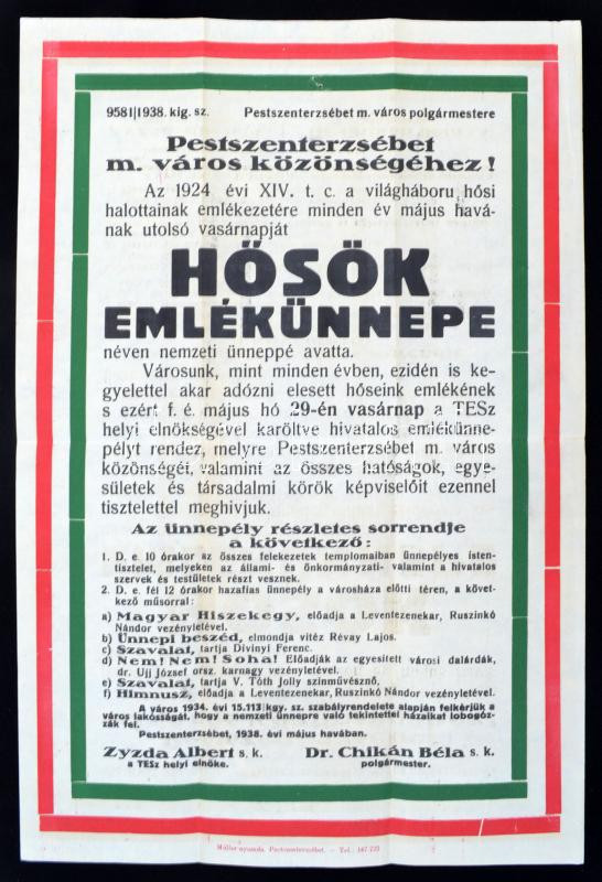 1924 Pestszenterzsébet Hősök emlékünnepe műsorának plakátja