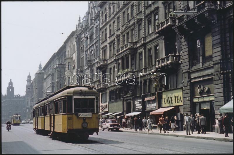 45-ös villamos a Kossuth Lajos utcában, régi fotó modern nagyítása, 10x15cm