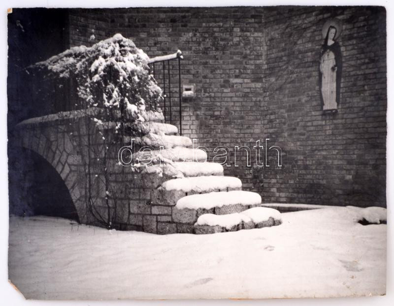 Fagyos Madonna, fotó kartonra kasírozva, verzón M.P.S.L. fotókiállítás 1938 matricával, sarok hiányzik, 30x39cm