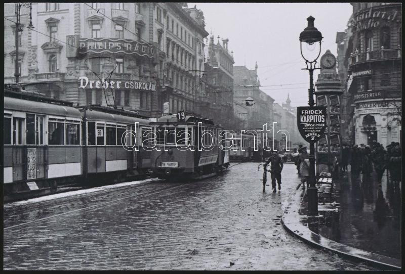 cca 1935 Budapest, a 69-es és 19-es villamosok vonalán, közlekedési életkép, korabeli negatívról készült modern nagyítás, 13x18 cm