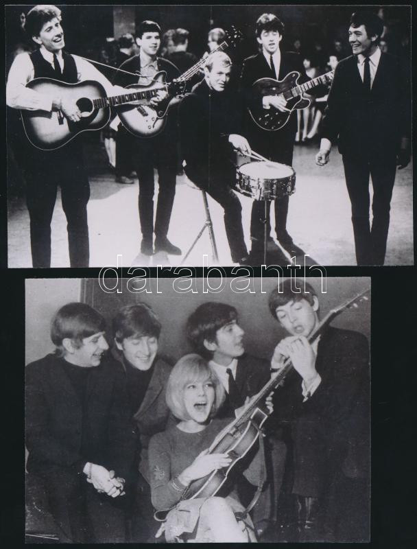Description: cca 1965 Beatles együttes 2 db korai fényképe, Fekete György (1904-1990) budapesti fényképész hagyatékában levő 2 db régi negatívról készült modern nagyítás, 10x13 cm és 9,5x15 cm