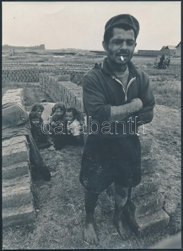 cca 1968 Ilku János: Vályogvető, feliratozott vintage fotóművészeti al...