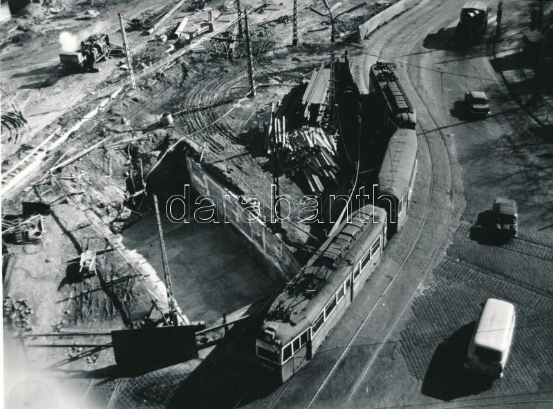 cca 1970 Budapest, 52-es villamos eltérített pályán, 18x24 cm