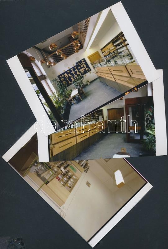 cca 1974 Budapest, Dísz téri gyógyszertár kívül-belül, 7 db korabeli negatívról készült modern nagyítás 10x15 cm-es fotópapírra