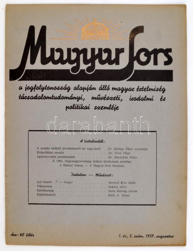 https://www.darabanth.com/en/257-Online-auction/257.0/Other-collectibles/Printed-Materials~28/1937-Magyar-Sors-a-jogfolytonossag-alapjan-allo-magyar-ertelmiseg-tarsadalomtudomanyi-muvC3~II1260216