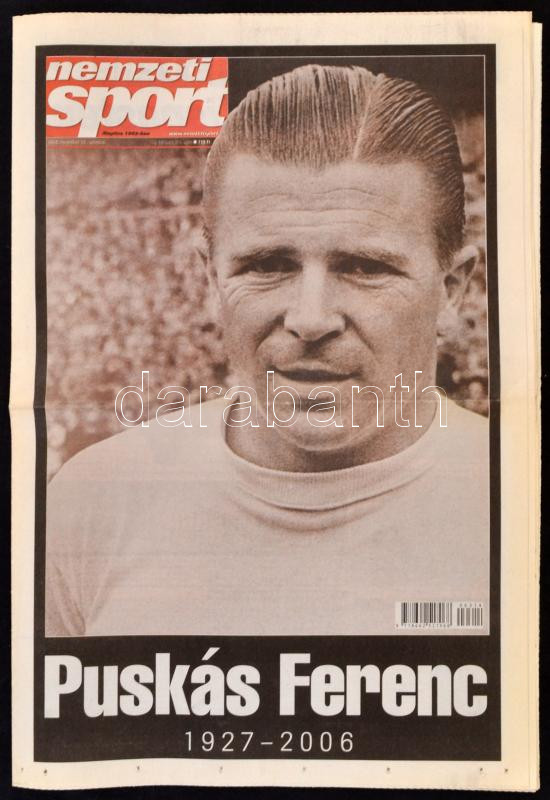 https://www.darabanth.com/en/257-Online-auction/257.0/Other-collectibles/Printed-Materials~28/2006-Nemzeti-Sport-nov-18-i-szama-Puskas-Ferenc-halalhirevel-pp24-48x31cm~II1260128