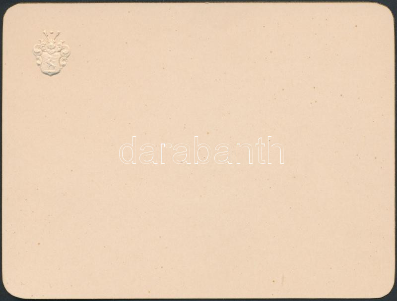 cca 1900-30 Dombornyomot címeres kártya aranyszéllel, boritékkal, szé...